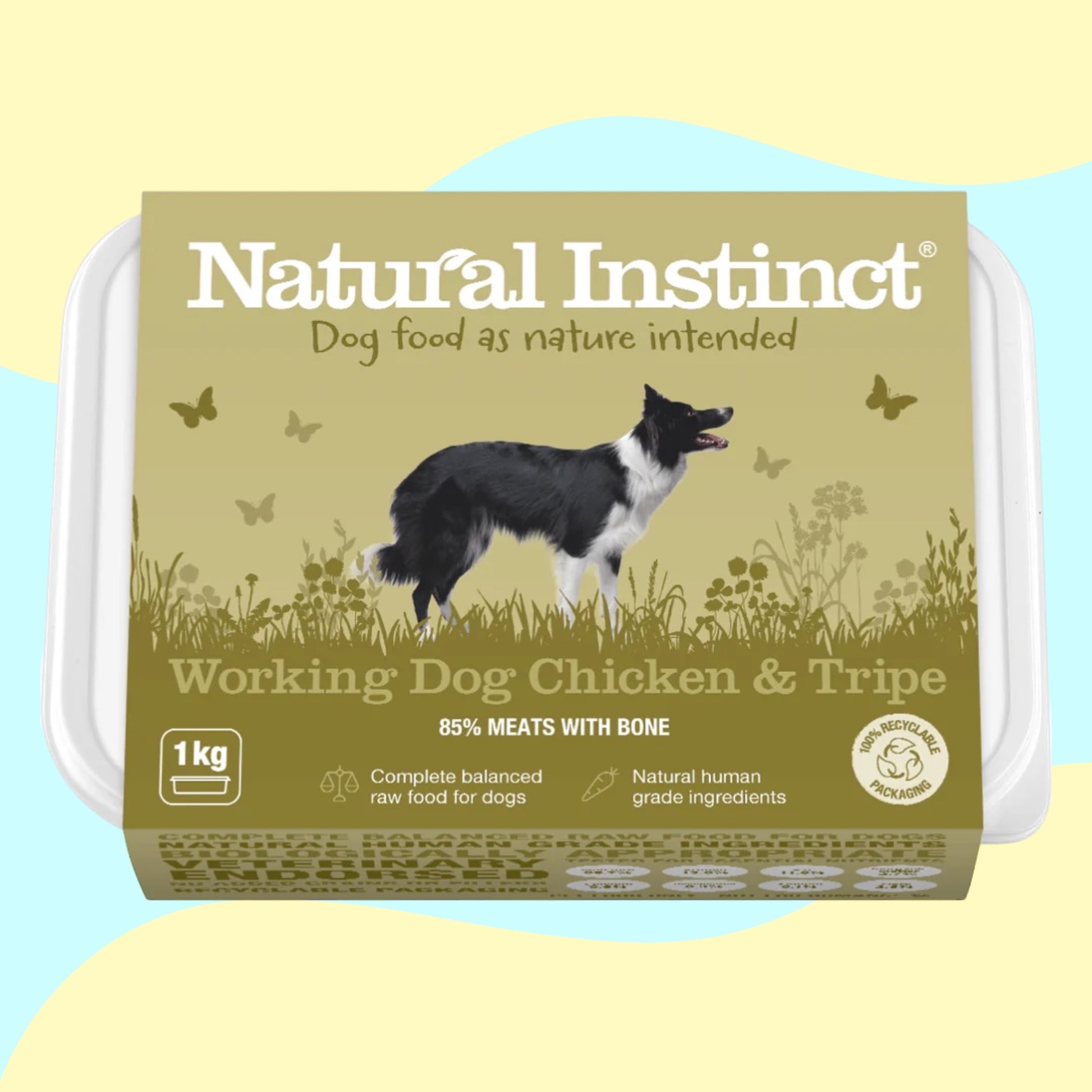 Natural Instinct'sWorking Dog Chicken & Tripe is a complete, balanced, raw dog food. Containing human-grade chicken meat with bone (45%), beef green tripe (40%), vegetables, fruits and added Vitamin C to keep your dog's immune system, ligaments and joints healthy and supported. This tasty chicken & tripe recipe is the perfect addition to your dog's menu. Ideal for fussier dogs!