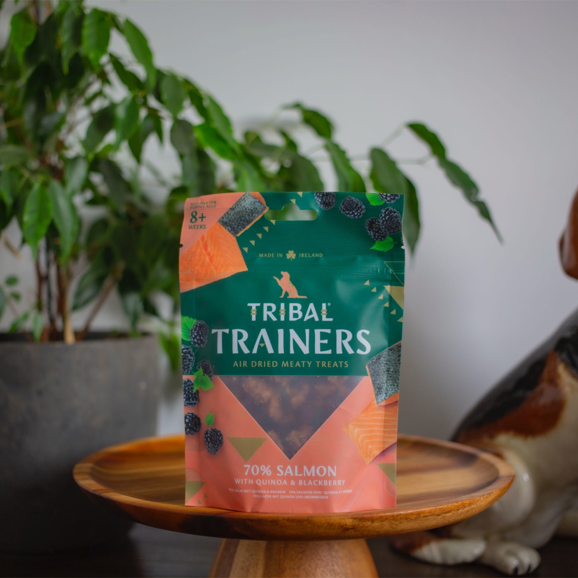 Tribal trainers are the perfect bite-sized treat for dogs & puppies from 8 weeks old. Gently air dried to lock in flavour and nutrients with 70% freshly prepared salmon and superfoods. With 50+ treats per pack, there’s now even more opportunity to bond with your dog.